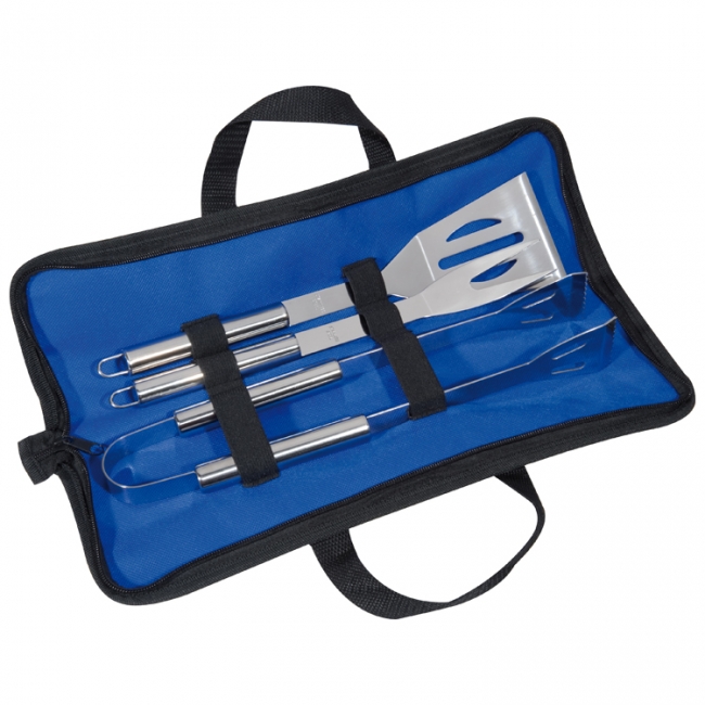 Set barbecue cu 3 piese. Setul conţine o pensetă barbeque, şpatulă şi o lingură din oţel inoxidabil. Personalizarea vă recomandăm prin serigrafie.