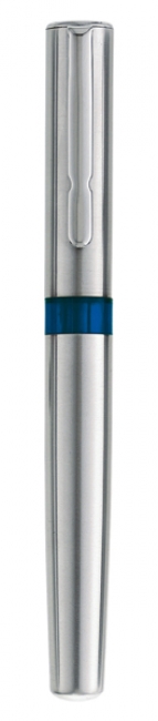 Pix ballpoint cu cerneala albastra metalic cu finisaj satin, cu insert centrat colorat, are o portiune anti-alunecare de cauciuc.
