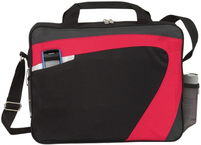 Are buzunar de plasa pentru sticla de apa si buzunar de pixuri si carti de vizita.