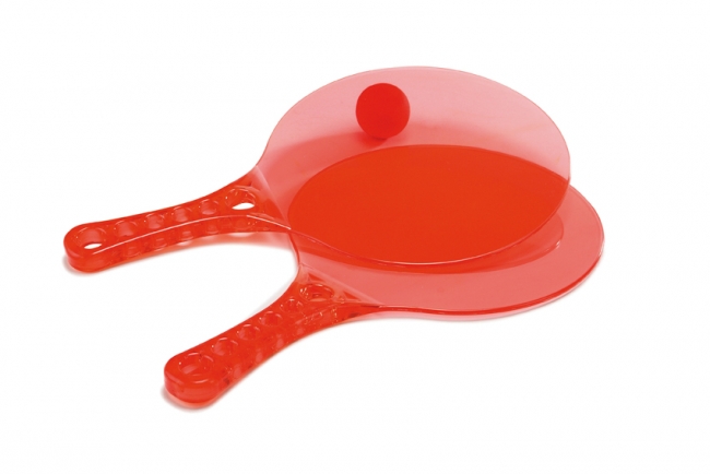 Palete tenis de plaja, rosie Palete de tenis de plaja transparente cu minge moale, intr-o plasa transparenta. brand Norwood