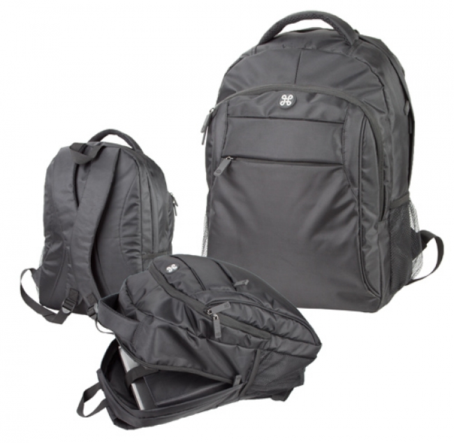 Rucsac Andre Philippe cu bretele reglabile, buzunarul din faţă cu fermoar, compartiment căptuşit pentru laptop, buzunare laterale din plasă, suport pix şi telefon mobil. Material: poliester 480D/PVC, căptuşeală: poliester 210D.