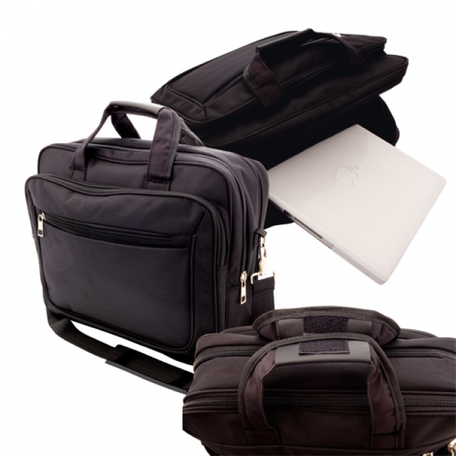Servietă cu compartiment căptuşit pentru laptop şi curea de umâr cu cârlig metalic. 1680D poliester.