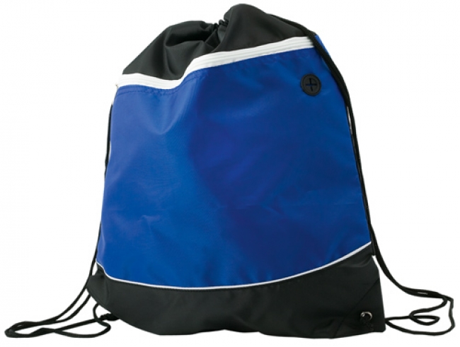 Rucsac din polyester 210T cu buzunare extra prevazute cu fermoar si orificiu pentru scoaterea castilor.