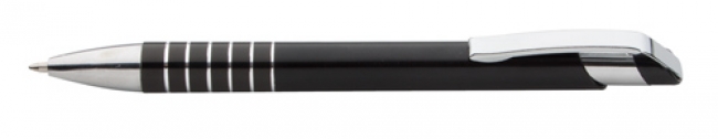 Pix din plastic cu vârfuri argintii, clips metalic şi dispozitiv de prindere din aluminiu. Mină albastră.