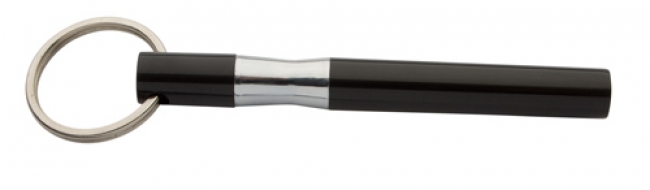 Pix mini din plastic cu corp colorat, dispozitiv de prindere cromat, cu inel metalic pe capac; mină albastră.