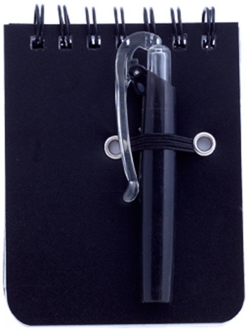 Carnetel spiralat in suport din plastic avand pix inclus.