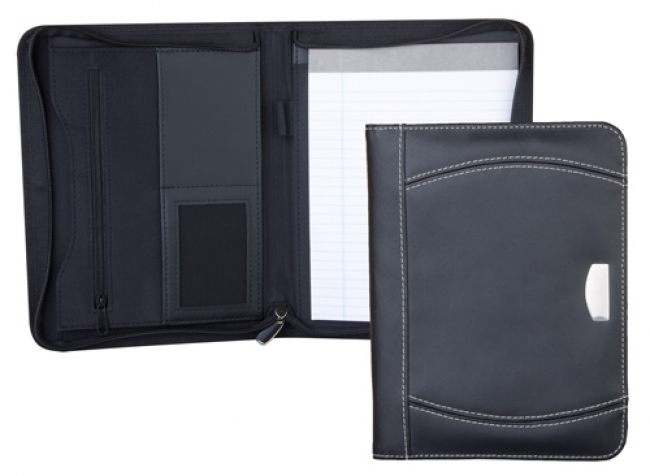 Din PU, cu fermoar, cu 30 de pagini şi capsă din metal.