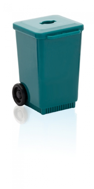 ÃŽn forma de coÅŸ de gunoi, din plastic.