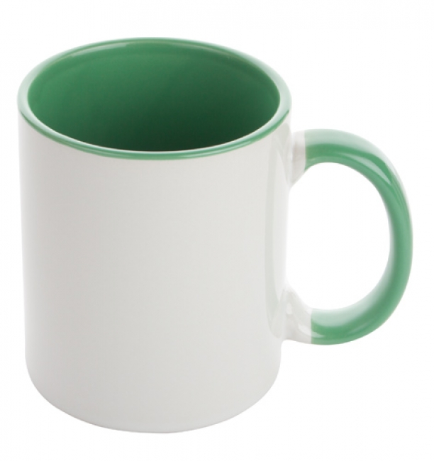 Cană ceramică, cu toartă colorată, poate fi personalizată prin sublimare, 350 ml. În cutie individuală.
