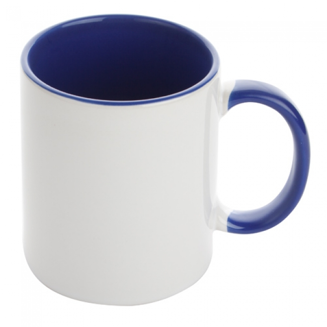 Cană ceramică, cu toartă colorată, poate fi personalizată prin sublimare, 350 ml. În cutie individuală.