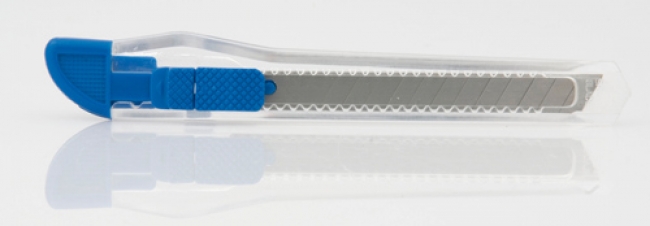 Cutter mic, din plastic, transparent.