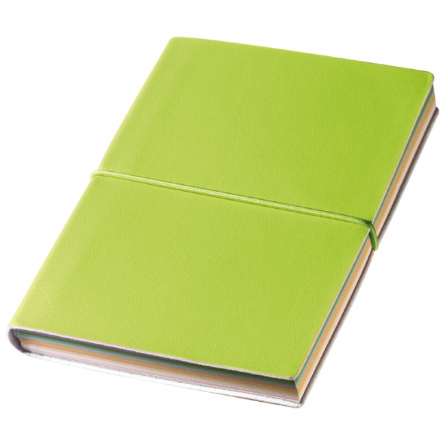 Pocketbook with flexible cover and coloured pages (144 pages) in nine different colours, perfect for your notes and thoughts. The pocketbook can be closed by means of an elastic strap.