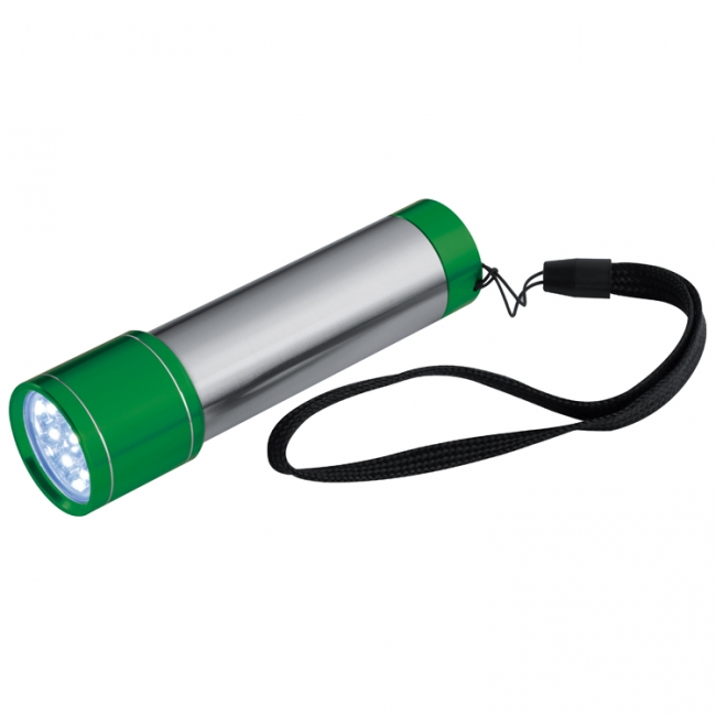 Beautiful stainless steel torch with coloured endings, nine LEDs and a nylon loop.