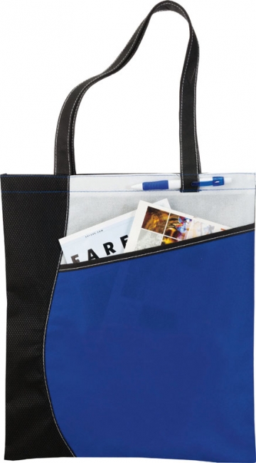Large main compartment with front slip pocket. Accent stitchwork throughout, pen loop and patterned non woven on black panels