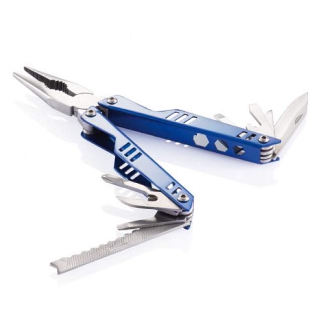 Are 15 functii, confectionata din inox, include 2 clesti, foarfeca de sarma, cutit mare, cateva surubelnite, cutit mic, pila, cheie de piulite (6/8/10mm) si altele. Punguta este inclusa.