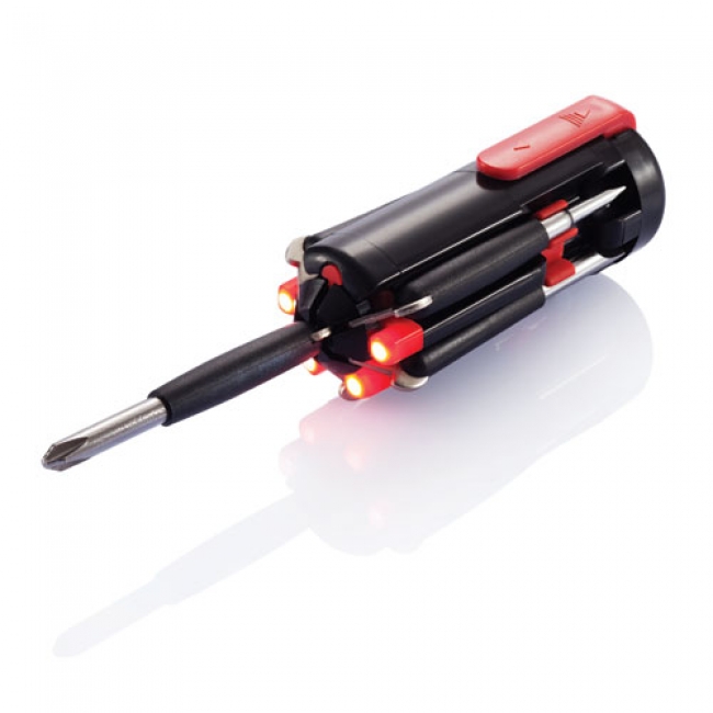 Surubelnita 6 in 1 Corp confectionat din ABS cu unelte din otel-carbon : 2 slotted, 2 philips, 1 torx si 4 LEDuri pentru vizibilitate maxima cand lucrati.