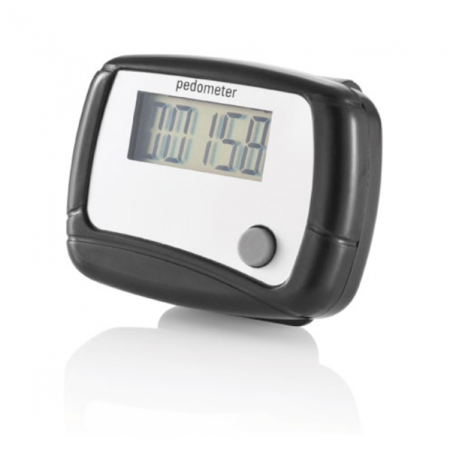 Pedometru Basic Pedometru cu o singura functie, negru, in carcasa din material ABS cu panou argintiu.
