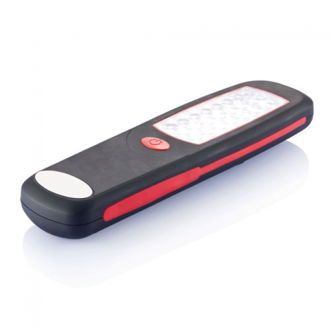 Lanterna Tool Pro In carcasa din ABS, rosie, cu corp cauciucat negru, carlig de metal negru, 24 LEDuri albe.