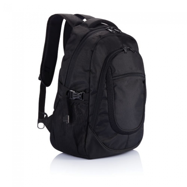 Acest rucsac este facut din material 1680D cu cablu integrat pentru casti pentru iPad-ul sau MP3-ul tau. Iti poti conecta castile pe breteaua de umar si esti gata de drum. Exista si un compartiment separat pentru laptop de 17 inchi.