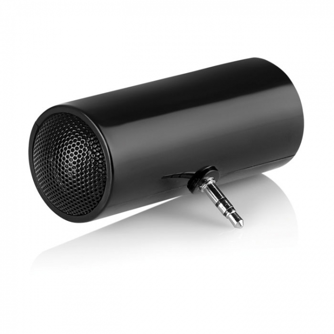 Difuzor în carcasă din ABS. Poate fi adaptat pentru MP3/4, iPod & iPhone precum și pentru telefoane inteligente. Funcționează cu 2 baterii AA care nu sunt incluse. Ambalat în cutie argintie din carton