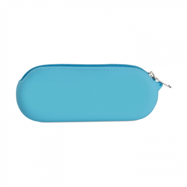 Cutie pentru cosmetice sau pixuri produsă din silicon cu fermoar cu cheiţă lucioasă.