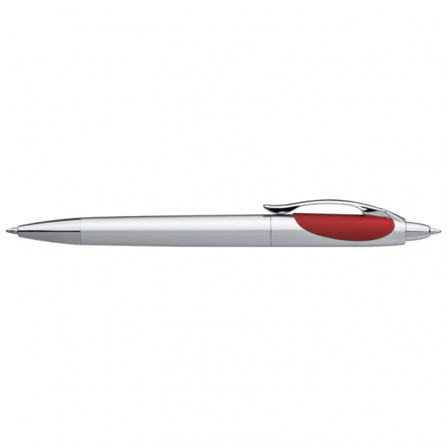 At first sight a standard push-button ball pen, but providing two refills! By turning the ball pen, a black writing refill appears from the pusher, which disappears immediately due to the special downing mechanism, when holding the pusher upright. With blue writing big refill and robust metal clip.