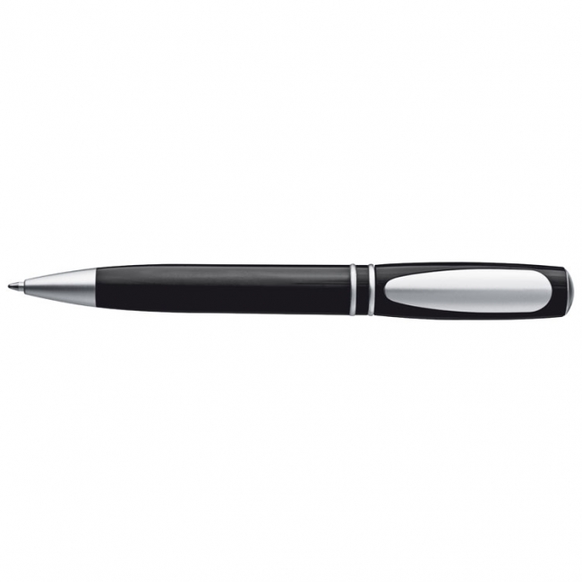 Ball pen with vanishing clip: by unscrewing the blue writing refill the clip is drawn in by means of a mechanism and fits exactly to the plastic housing of the ball pen.