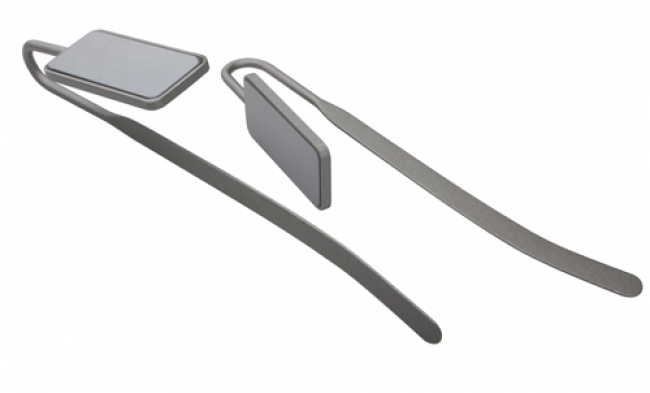 Semn de carte metalic, finisaj metalic și suprafaţă strălucitoare.
