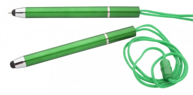 Pix din plastic cu stylus pentru touch screen, cu lanyard. Mină albastră.