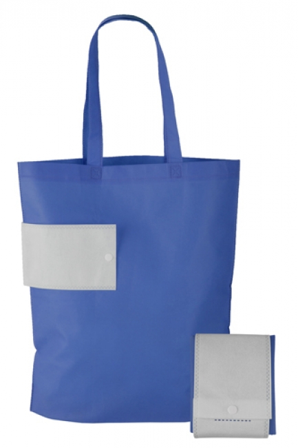 Geantă de cupărături cu capsă, pliabilă, material neţesut.