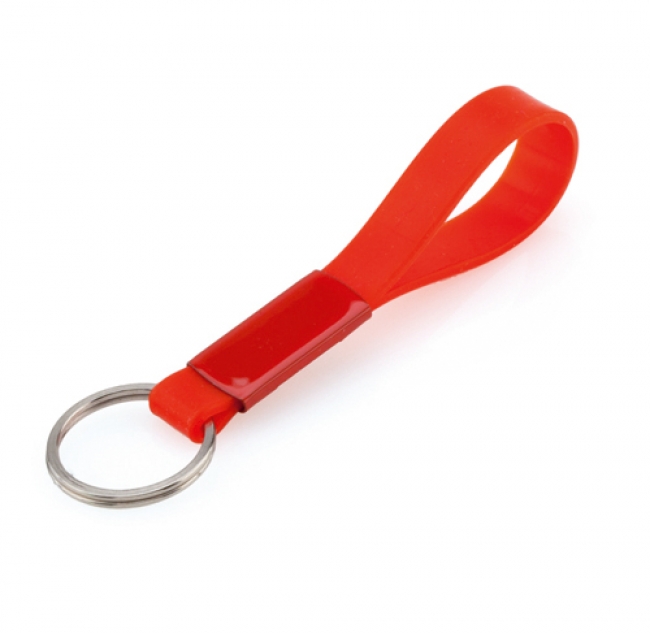 Breloc din silicon cu inel metalic.