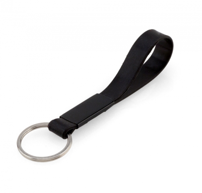 Breloc din silicon cu inel metalic.