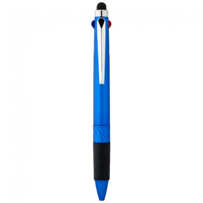 Burnie multi-ink stylus ballpoint pen. Multi-ink stylus ballpoint pen with click action mechanism and rubber grip. Incl. black, blue and red ink refill. Plastic.