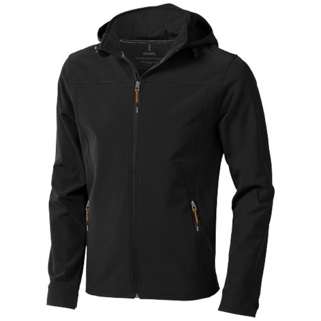 Langley softshell jacket. Detachable hood with elastic cord and stoppers. Reversed zippers at centre front and in hand pockets. Adjustable cuff with flap with velcro closure. Reflective logo print at back. 5000 mm waterproof. 3000 mm Breathable. 4-way stretch fabric. Windproof. Easy grip zipper pullers (with second set in anthracite). 90% Polyester, 10% Elastane Woven fabric bonded with 100% Polyester micro fleece. 300 g/mý