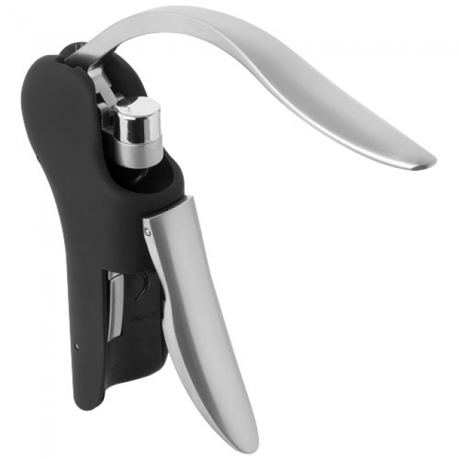 Lever corkscrew. Modern style corkscrew with spare corkscrew. Including logo plate and presented in a gift box. Metal.