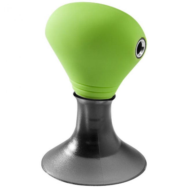 Spartacus music splitter & phone stand. The item allows two people to listen to the same audio device at the same time with their own set of earbuds. The item can also be used as a phone stand by pressing the suction cup at the back of the stand. Can be used on smartphones, tablets and all music players with a 3,5 mm audio jack. ABS plastic and silicon base.