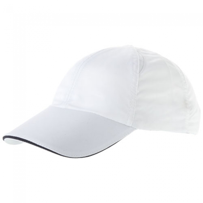 Alley 6 panel cool fit sandwich cap. Breathable material is used so your head stays cool while playing sports. Velcro closure with printed Slazenger logo and metal ring. Polyester.
