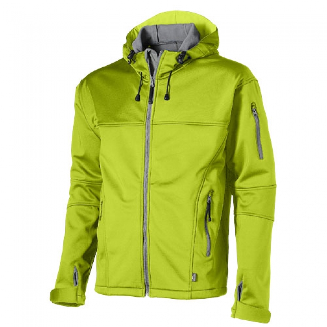 Match softshell jacket. Waterproof soft shell jacket. Breathable. Adjustable hood with elastic cord and stoppers. Front and sleeve pockets with reversed zipper. Adjustable cuff with flap with velcro closure. Drawstring at bottom with cord stoppers. Back is longer than front. Slazenger rubber label at the front. Single jersey knit of 100% Polyester bonded with 100% Polyester micro fleece. 360 g/mý