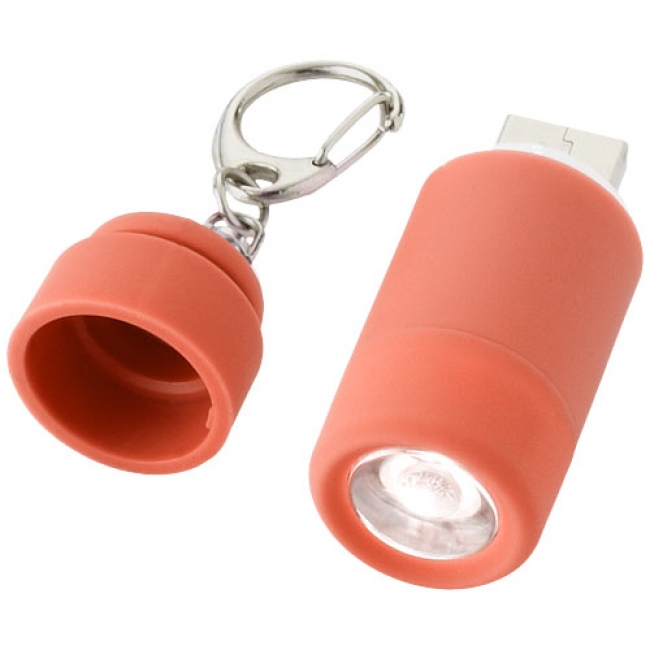 Avior rechargable USB key light. Single LED rechargeable USB torch with twist-action on/off power switch and metal split key chain. Battery included. ABS plastic with soft touch coating.