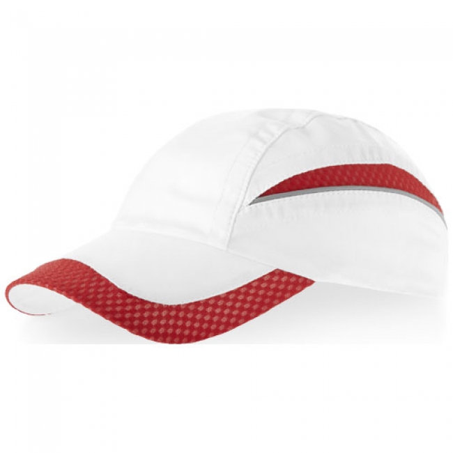 Qualifier 6 panel mesh cap. Colored mesh added for better air circulation. Velcro closure with ABS ring and Slazenger logo tab. Polyester.