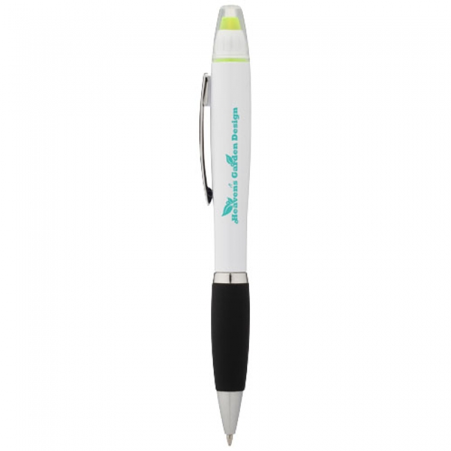 Nash ballpoint pen & highlighter. Twist action mechanism ballpoint pen and wax highlighter with soft touch grip. Plastic.