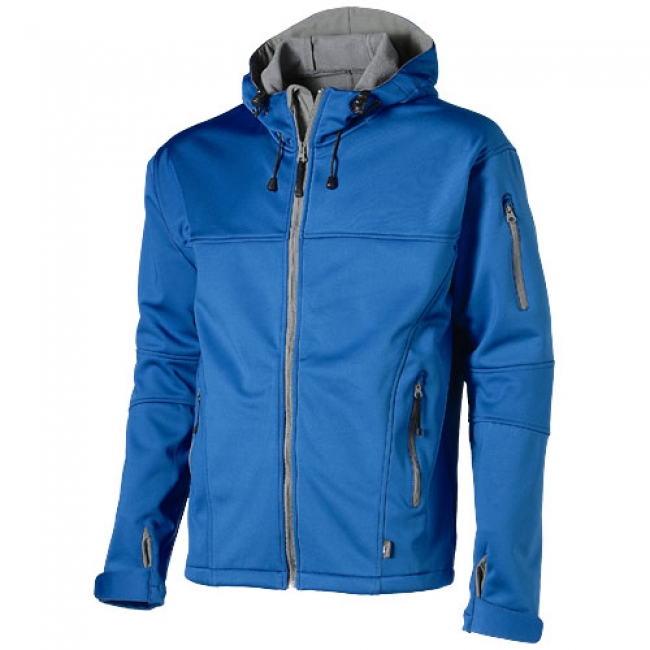 Match softshell jacket. Waterproof soft shell jacket. Breathable. Adjustable hood with elastic cord and stoppers. Front and sleeve pockets with reversed zipper. Adjustable cuff with flap with velcro closure. Drawstring at bottom with cord stoppers. Back is longer than front. Slazenger rubber label at the front. Single jersey knit of 100% Polyester bonded with 100% Polyester micro fleece. 360 g/mý