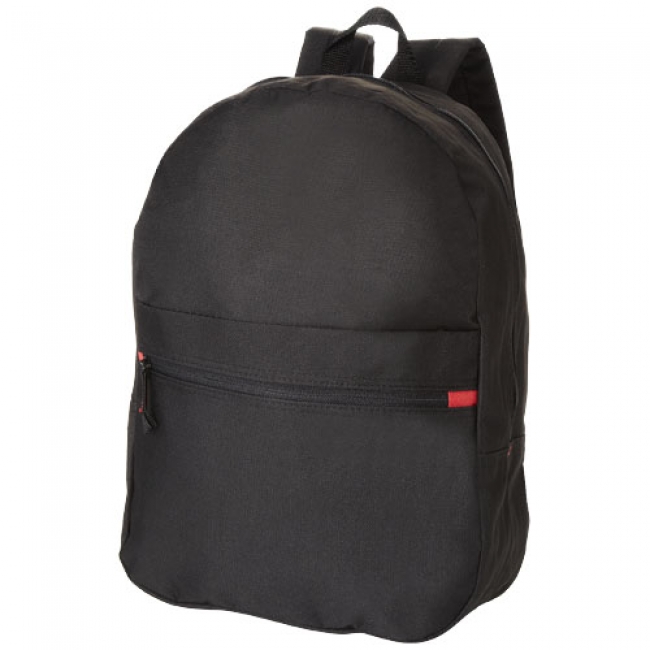 Vancouver backpack. Rucksack with red detail and front zipper pocket. 600D polyester.