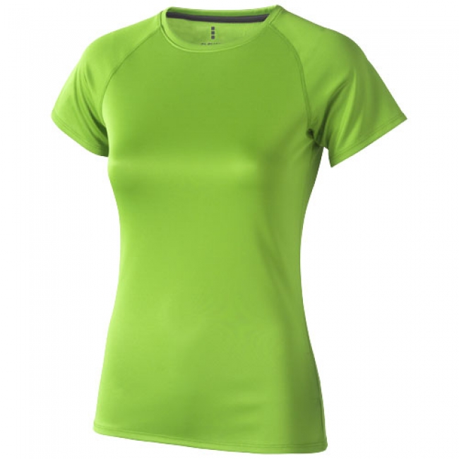 Niagara Cool fit ladies T-shirt. Cool Fit. Satin neck tape. Reflective logo print at back. Thin flatlock on raglan seam. Small double needle stitching on sleeve and bottom hem. Fine quality mesh knit. 100% Polyester mesh. 145 g/m2