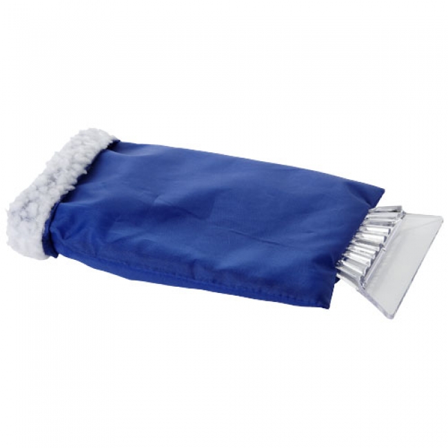 Ice scraper with glove. Ice scraper with a protective polyester glove with extra inside padding. Polyester and plastic. Polyester glove