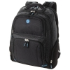 Checkpoint-Friendly 15.4" Compu-Backpack. Excluve design laptop bag Includes designated laptop-only section that unfolds to lay flat on an x-ray belt to increase speed through security. Side entry laptop compartment holds up to 15.4" laptops. Open main compartment includes a dedicated zippered nylex-lined padded tablet pocket. Zippered top pocket with organisation panel and ear bud port access. Unique hidden grab handle and neoprene carry handle. Back panel designed to slip over trolley handles. Bag is packed in a non woven gift pouch. 600D Polyester.