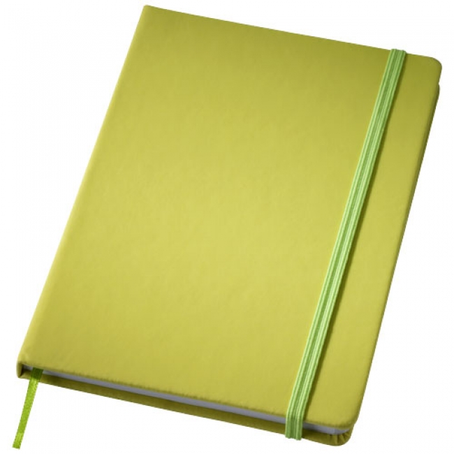 Rainbow notebook M. Notebook with matching color elastic closure and ribbon. Includes 80 sheets (70 gsm) lined paper. PVC covered cardboard.