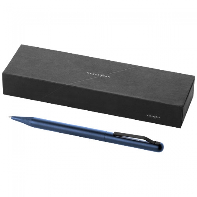 Smooth ballpoint pen. This luxury ballpoint pen with twist action mechanism is a sleek operator that blends functional components in a smooth design. Incl. Swiss-made refill and Marksman sliding gift box (size: 20 x 5 x 2.5cm). Exclusive Marksman design. Metal.
