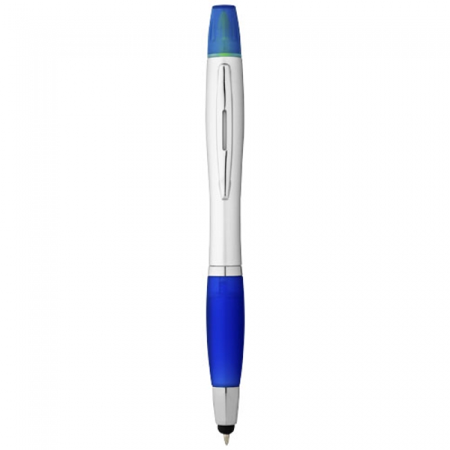 Nash stylus ballpoint pen & highlighter. Twist action mechanism stylus ballpoint pen with highlighter and soft touch grip. Plastic.