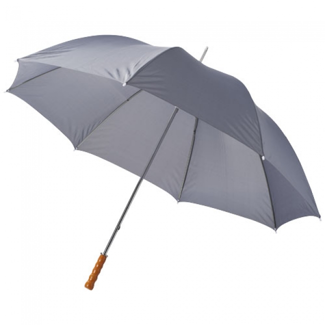 30" Golf umbrella. 30" umbrella with metal frame, metal ribs and wooden handle. Polyester.